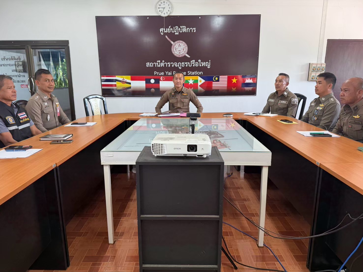สภ.ปรือใหญ่ วันที่ ๖ มีนาคม 2568 พ.ต.อ.อัครพล รัศมี ผกก.สภ.ปรือใหญ่ ประชุมคณะคณะกรรมการดำเนินการในกา