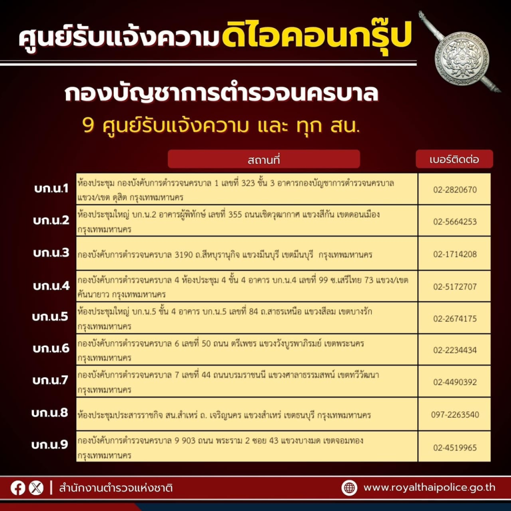 เช็กพิกัด & เบอร์โทร ศูนย์รับแจ้งความคดี คดี THE iCON GROUP![]()