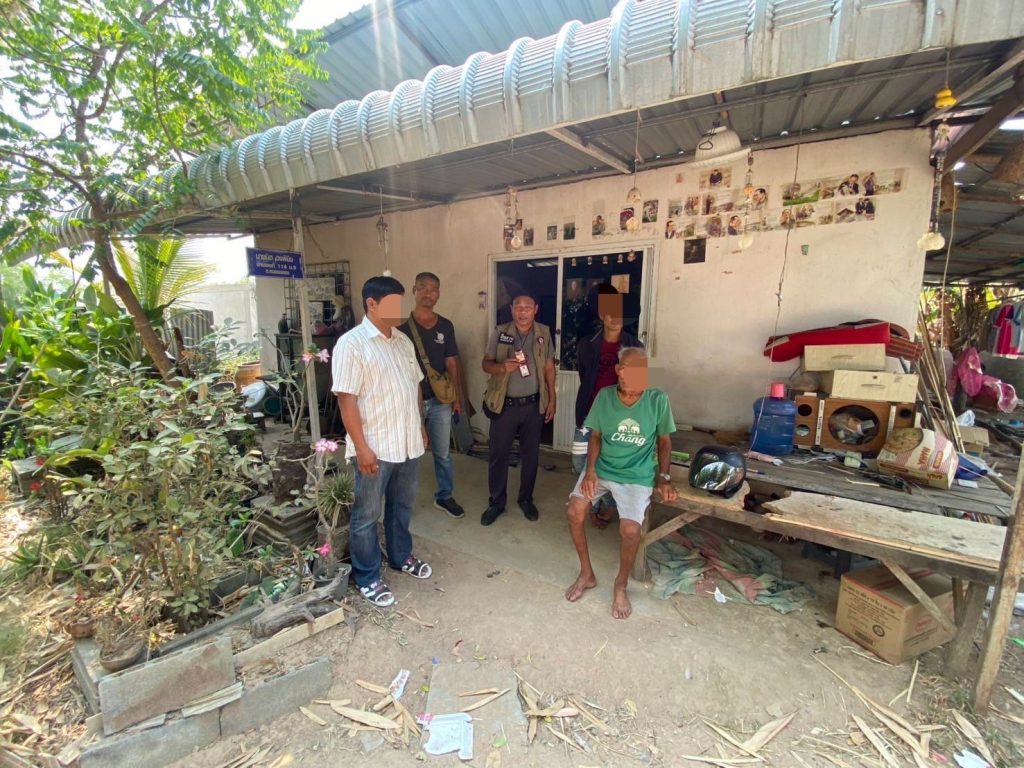 สถานที่จับกุมผู้ต้องหาที่ 1และ2 บริเวณบ้านเลขที่ 114 ม.9 ต.หนองฉลอง อ.ขุขันธ์ จ.ศรีสะเกษ