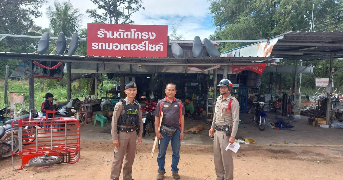 ตรวจร้านซ่อมรถจักรยานยนต์ ร้าน นายวิชิต กัลยามา 7ม.9 ต.หนองฉลอง อ.ขุขันธ์ จว.ศรีสะเกษ