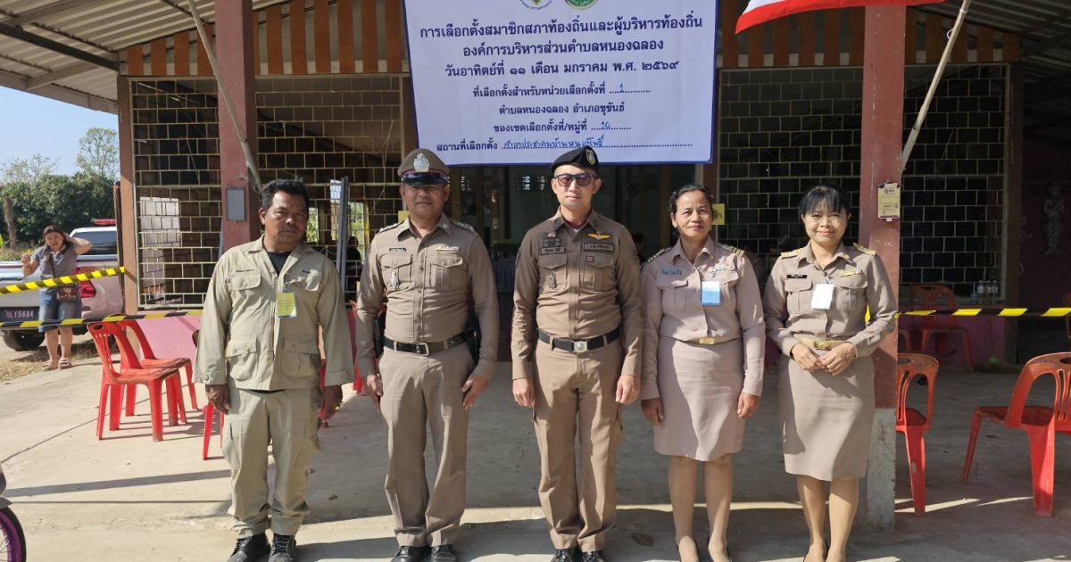 พ.ต.อ.อัครพล รัศมี ผกก.สภ.ปรือใหญ่ พร้อมด้วย พ.ต.ท.กิตติศักดิ์ พิมูลชาติ สว.อก.ฯ ได้ออกตรวจเยี่ยมหน่วยเลือกตั้งที่ 1 ตำบลหนองฉลอง อำเภอขุขันธ์ จังหวัดศรีสะเกษ