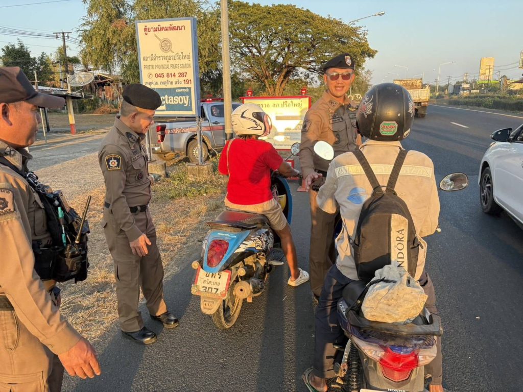 วันนี้ 9 ม.ค.69 เวลา 17.00 น. พ.ต.อ.ชยากร เทศะบำรุง รอง ผบก.ภ.จว.ศรีสะเกษ ได้เดินทางมาตรวจเยี่ยม จุดตรวจจุดสกัดยาเสพติด บริเวณหน้าตู้ยามนิคมพัฒนา ถนน 24 ต.นิคมพัฒนา อ.ขุขันธ์ จ.ศรีสะเกษ โดยมี พ.ต.อ.อัครพล รัศมี ผกก.สภ.ปรือใหญ่ , พ.ต.ท.จิรประวัติ บุญรินทร์ รอง ผกก.ป.สภ.ปรือใหญ่ ให้การต้อนรับ
