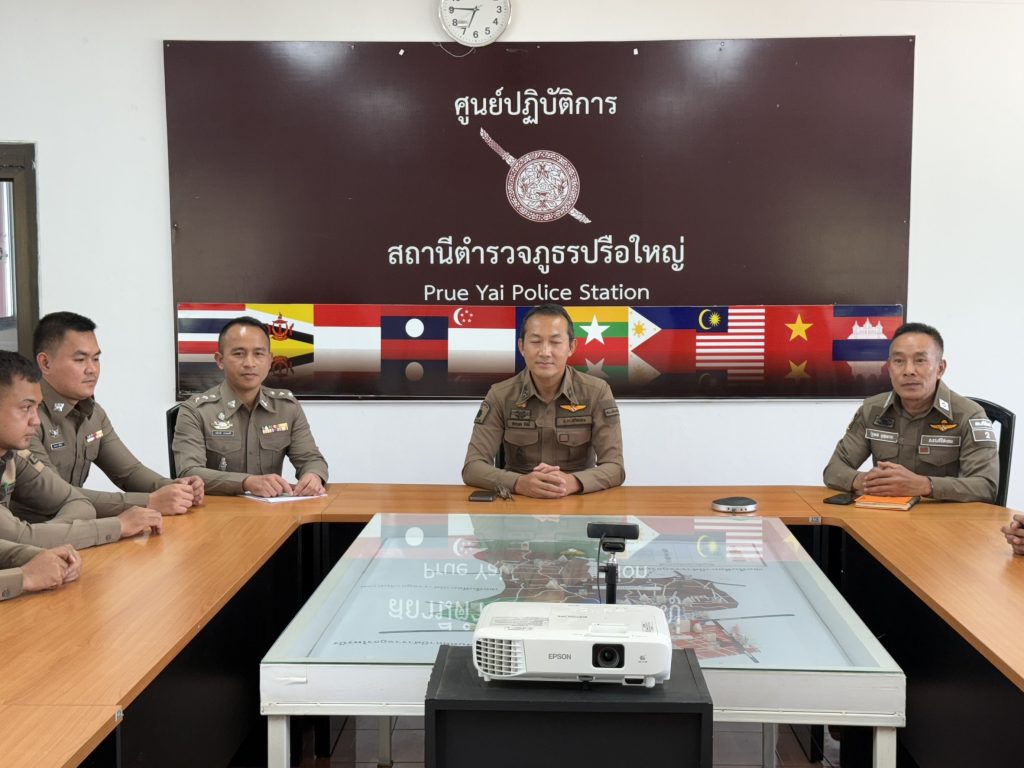 พ.ต.อ.อัครพล รัศมี ผกก.สภ.ปรือใหญ่ พร้อมด้วย พ.ต.ท.รัฐพล บุญมาก รอง ผกก.ป.สภ.ปรือใหญ่ , พ.ต.ท.ไพโรจน์ ครรณา สวป.สภ.ปรือใหญ่