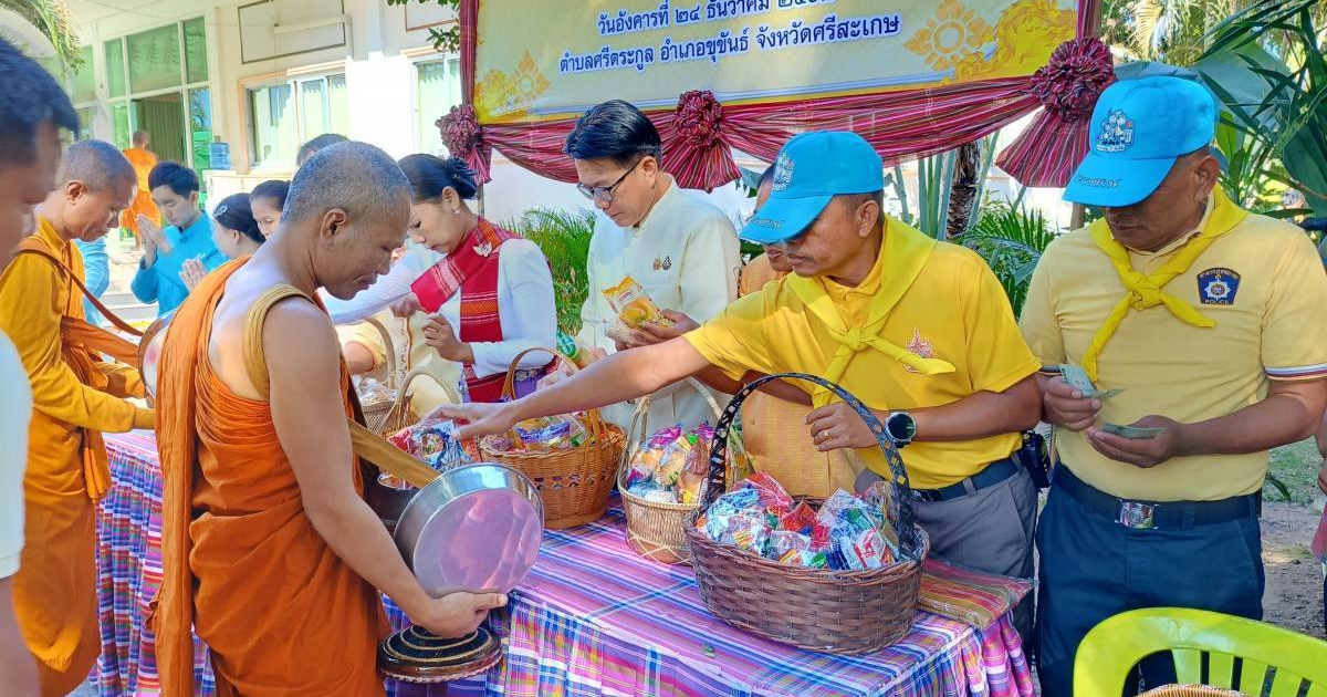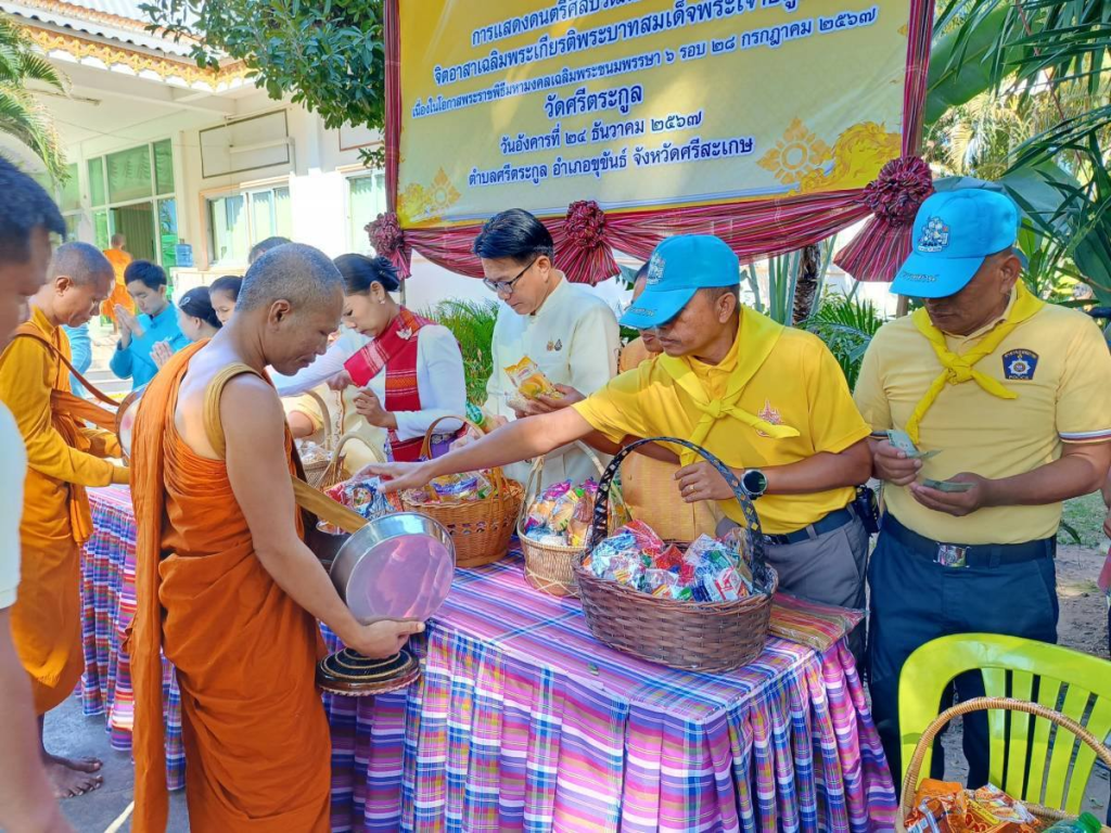 ร.ต.ท.อุดมพร ในทอง รอง สวป.ฯ จิตอาสา .สภ.ปรือใหญ่ พร้อมด้วย หัวหน้าส่วนราชการ ร่วมพิธีเจริญพระพุทธมนต์ถวายพระพรชัยมงคลแด่ พระบาทสมเด็จพระเจ้าอยู่หัว และสมเด็จพระนางเจ้าฯ พระบรมราชินี และกิจกรรมนุ่งผ้าไทยใส่บาตร ทำความดี วิถีพอเพียง ณ วัดศรีตระกูล ต.ศรีตระกูล อ.ขุขันธ์ จ.ศรีสะเกษ