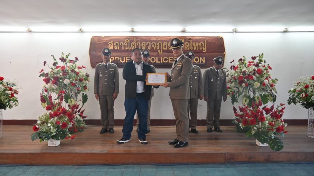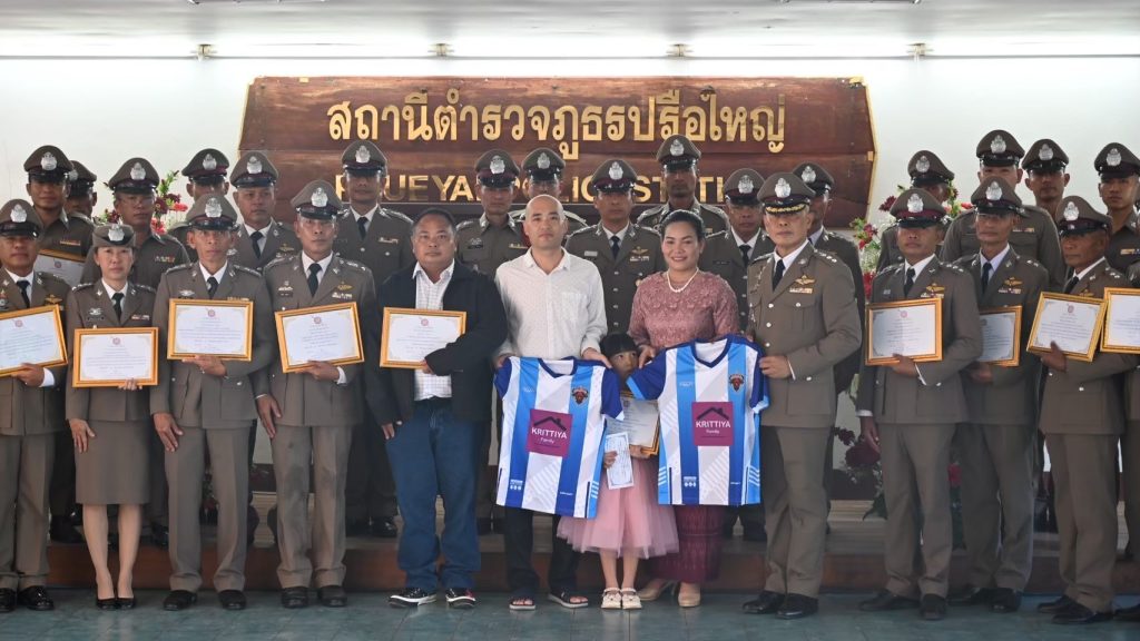 พ.ต.อ.ดนัย รัตนประเสริฐ รอง ผบก.ภ.จว.ศรีสะเกษ/รรท.ผกก.สภ.ปรือใหญ่ พร้อมด้วย นายสมบัติ บุญนะรา ประธาน กต.ตร.สภ.ปรือใหญ่ และ กต.ตร.สภ.ปรือใหญ่