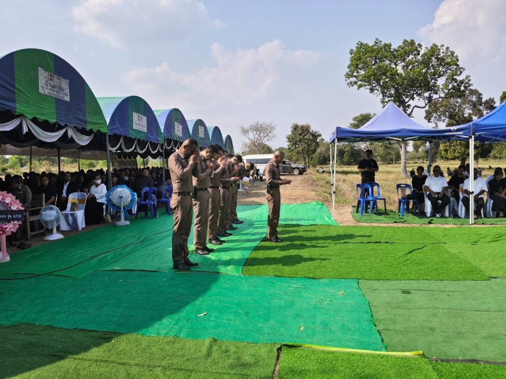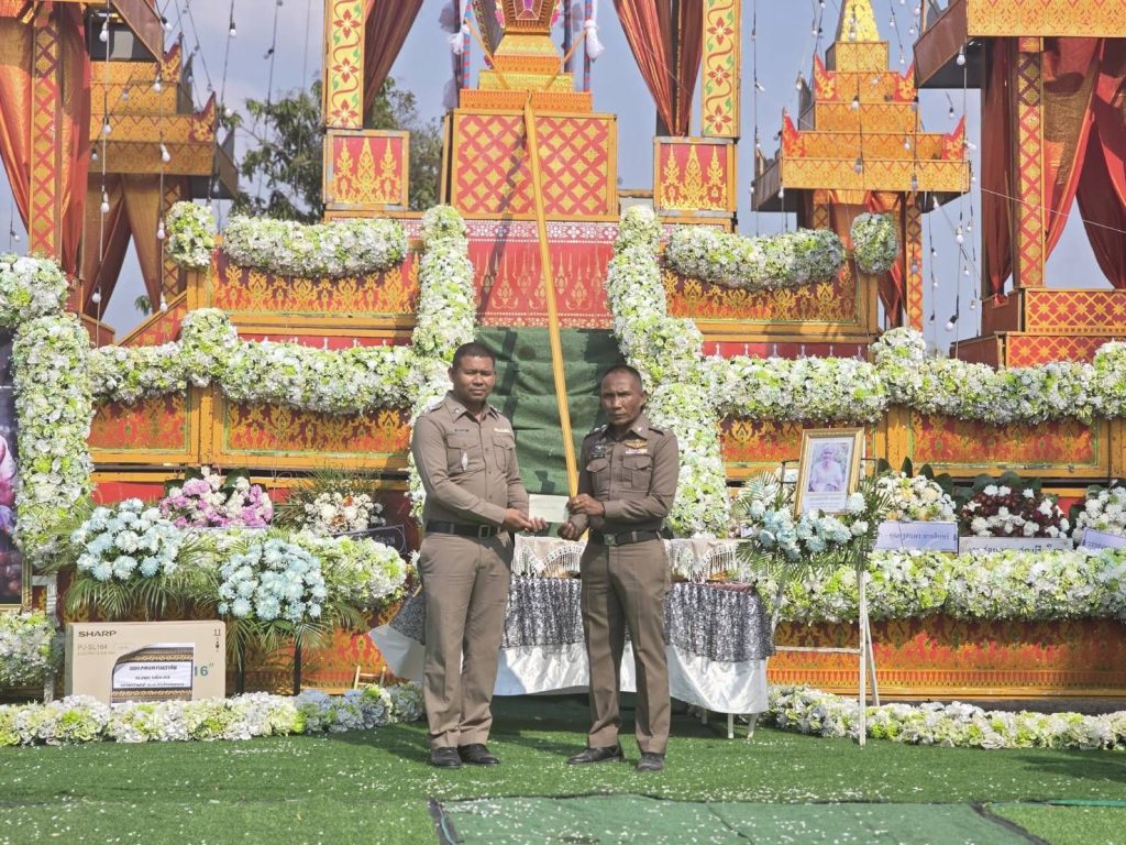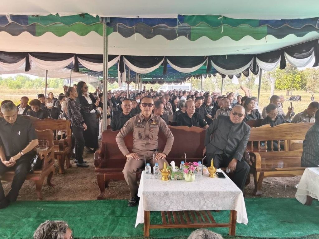ร่วมบำเพ็ญกุศลทอดผ้าบังสกุล วางดอกไม้จันทน์ ฌาปนกิจศพคุณแม่สายสน ดวงมณี มารดา ร.ต.อ.สมศักดิ์ ดวงมณี รอง สว.(ผช.พงส.)สภ.ปรือใหญ่