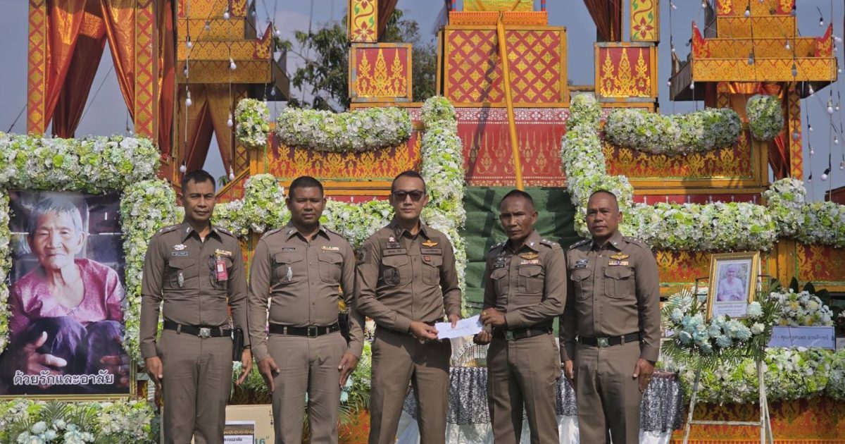 ร่วมบำเพ็ญกุศลทอดผ้าบังสกุล วางดอกไม้จันทน์ ฌาปนกิจศพคุณแม่สายสน ดวงมณี มารดา ร.ต.อ.สมศักดิ์ ดวงมณี รอง สว.(ผช.พงส.)สภ.ปรือใหญ่