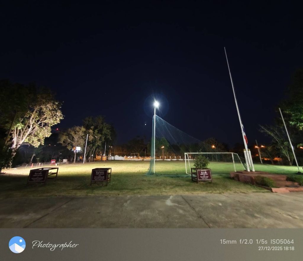 นายชาคริน ตองอบ กต.ตร.สภ.ปรือใหญ่ ได้ให้การสนับสนุนไฟสปอร์ตไลท์ บริเวณสนามฟุตบอล สำหรับใช้ในเป็นสนามจอด-ลง เฮลิคอปเตอร์ชั่วคราว
