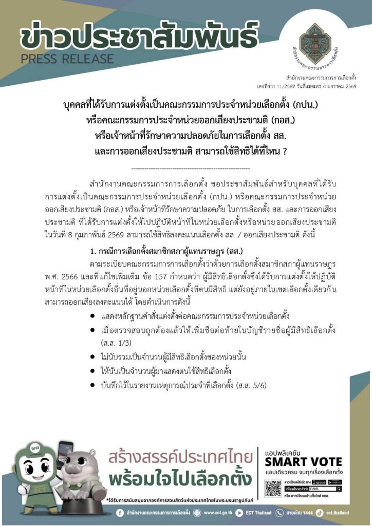 สร้างสรรค์ ประเทศไทยพร้อมใจไปเลือกตั้ง 4 มกราคม 2569 โดย adminPY / ข่าวประชาสัมพันธ์,ข่าวฝากประชาสัมพันธ์ Facebook iconFacebookTwitter iconTwitterLINE iconLine