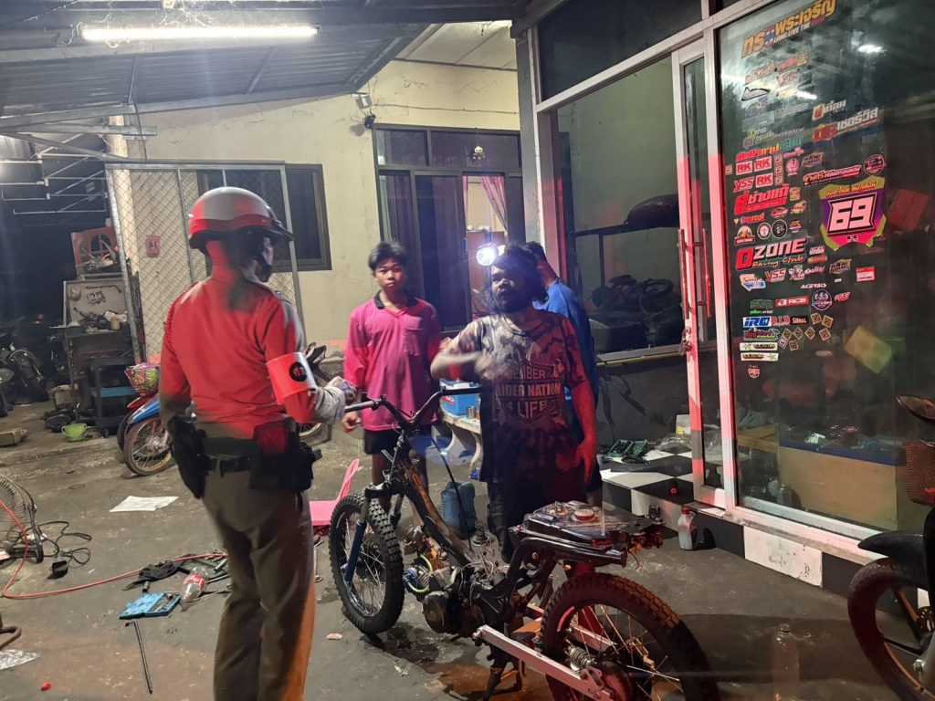 📍-พบว่าเป็นกลุ่มเด็กจากหมู่บ้านอื่นขับผ่านมาทางนี้ และได้ให้ข้อมูลทางกฎหมายแนวทางการปฏิบัติต่อร้านซ่อมรถต่อไป