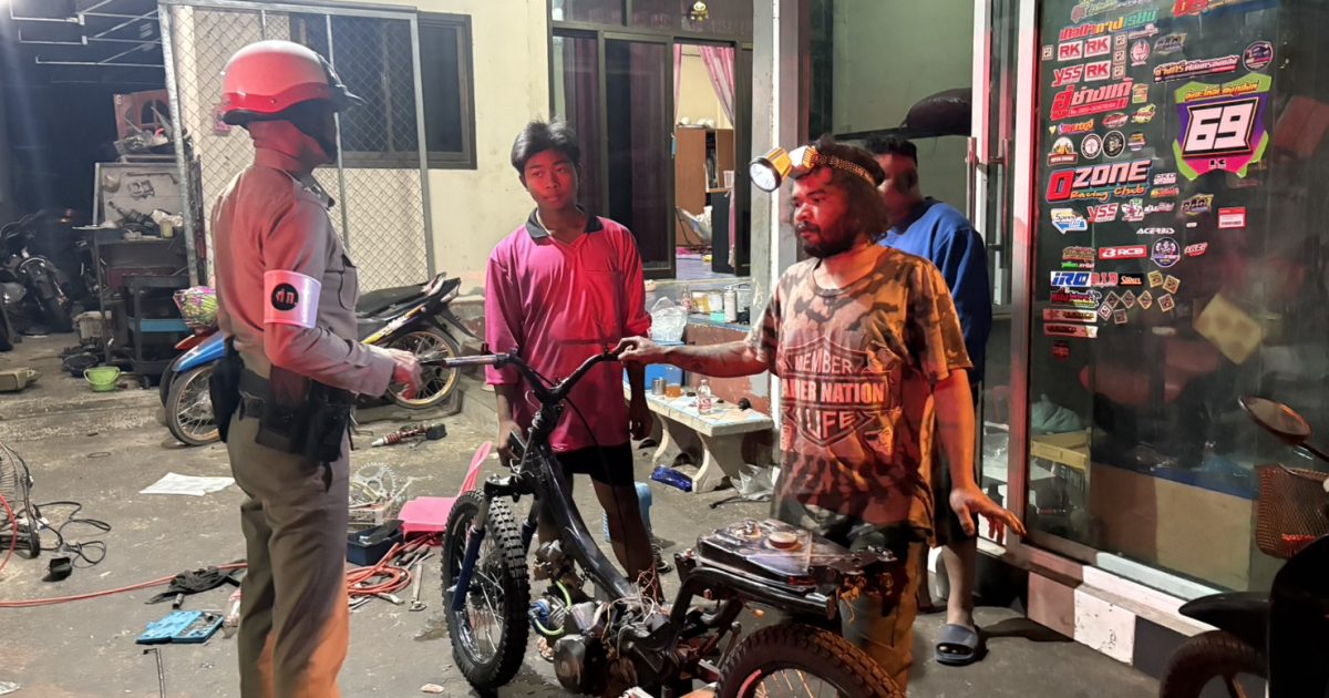 📍-พบว่าเป็นกลุ่มเด็กจากหมู่บ้านอื่นขับผ่านมาทางนี้ และได้ให้ข้อมูลทางกฎหมายแนวทางการปฏิบัติต่อร้านซ่อมรถต่อไป