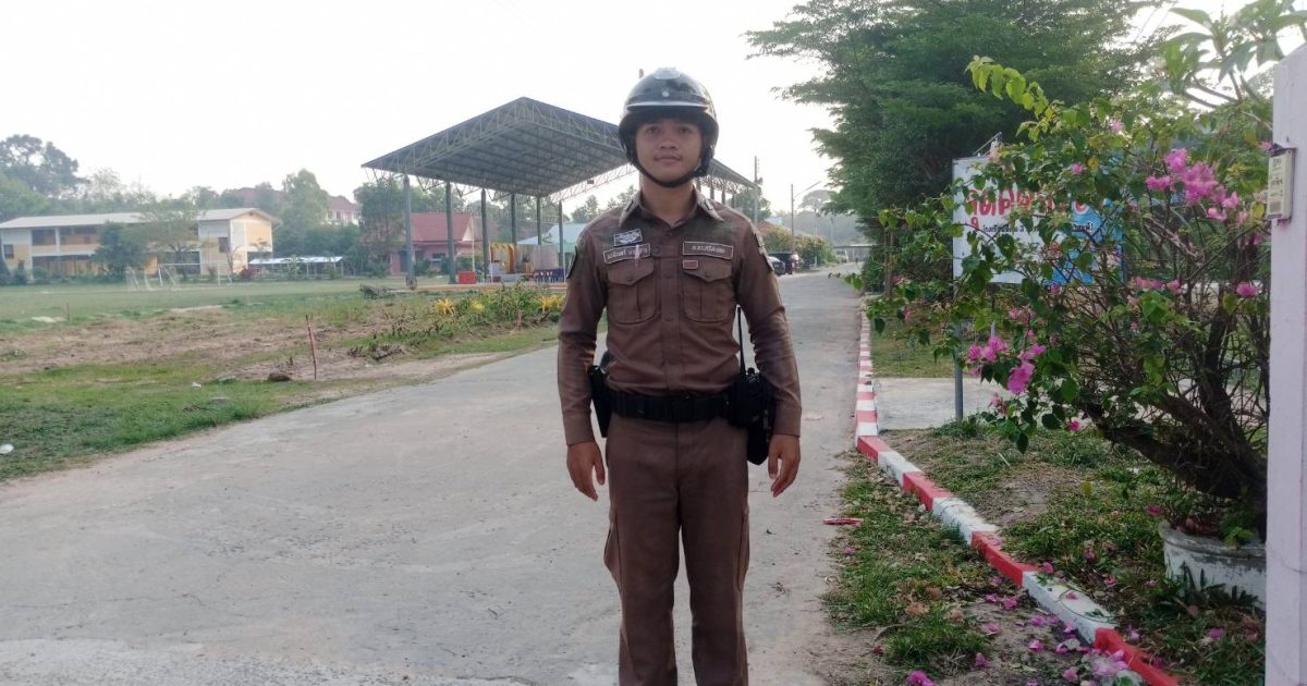 อำนวยความสะดวกการจราจร หน้าโรงเรียนนิคม3 (กรมประชาสงเคราะห์) ต.หนองฉลอง อ.ขุขันธ์ จ.ศรีสะเกษ