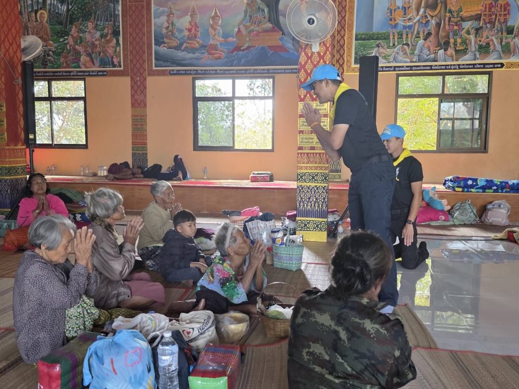ได้มอบน้ำดื่มพร้อมทั้งเยี่ยมให้ขวัญกำลังใจแก่ประชาชนที่ได้รับผลกระทบจากสงครามชายแดน โดยได้อพยพมายังศูนย์พักพิง ดังนี้