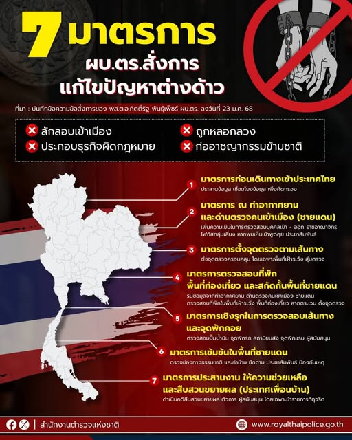 ผบ.ตร.บังคับใช้ 7 มาตรการเข้มข้น แก้ไขปัญหาคนต่างด้าวลักลอบหลบหนีเข้าเมือง ถูกหลอกลวง หรือประกอบธุรก