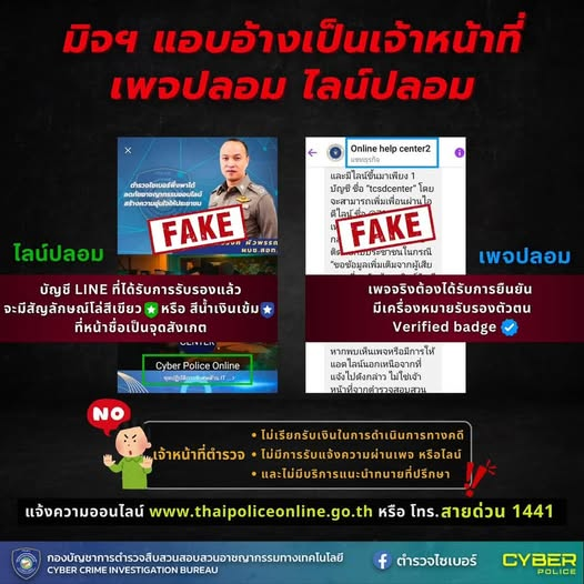 ตำรวจไซเบอร์เตือนภัย มิจฯ แอบอ้างเป็นเจ้าหน้าที่ตำรวจ สร้างเพจปลอม ไลน์ปลอม . . รูปแบบการหลอกลวง : 1