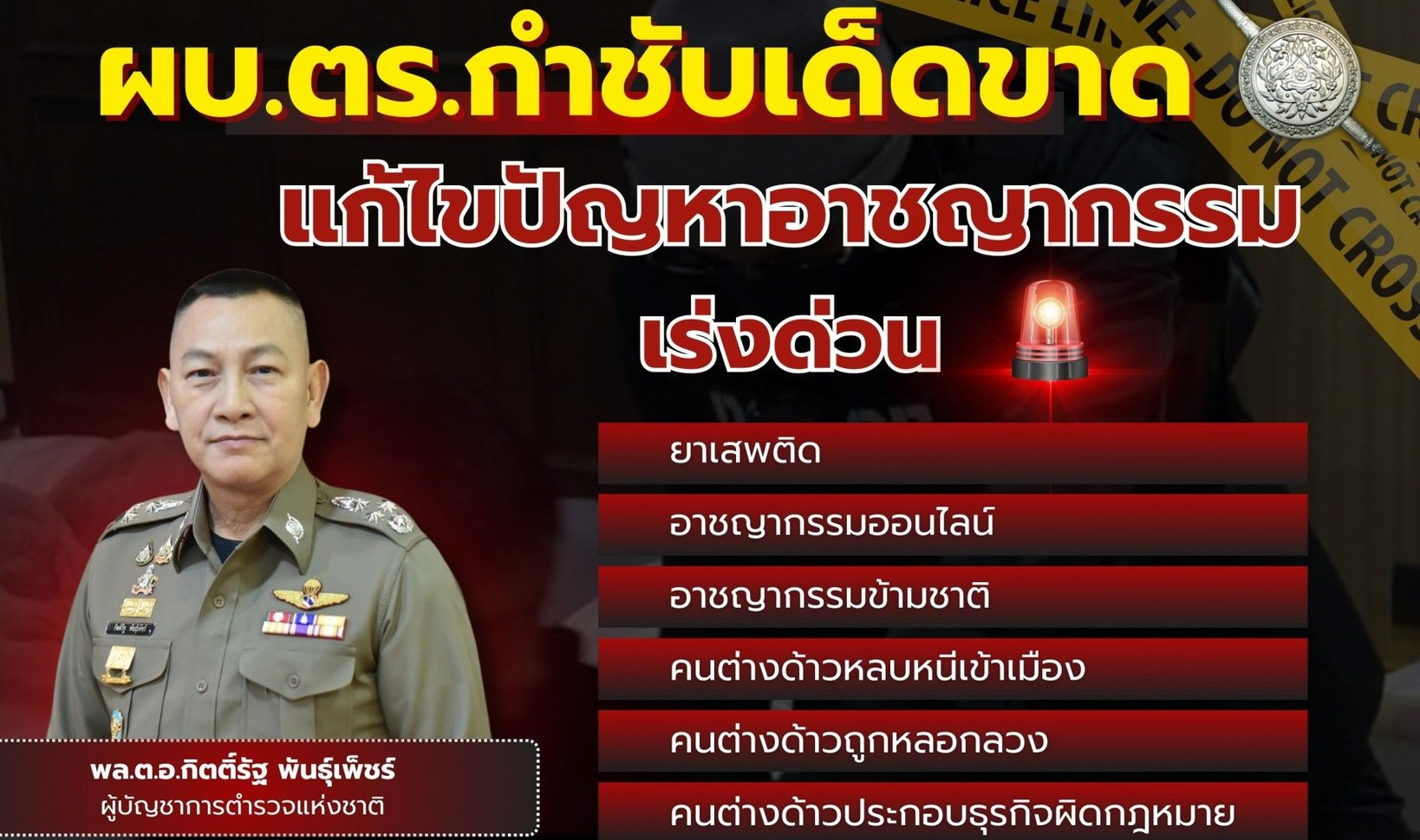 ผบ.ตร. กำชับ ตามที่ รัฐบาล และ ตร. มีนโยบายเร่งด่วนในการแก้ไขปัญหายาเสพติด ปัญหาอาชญากรรมออนไลน์ อาช